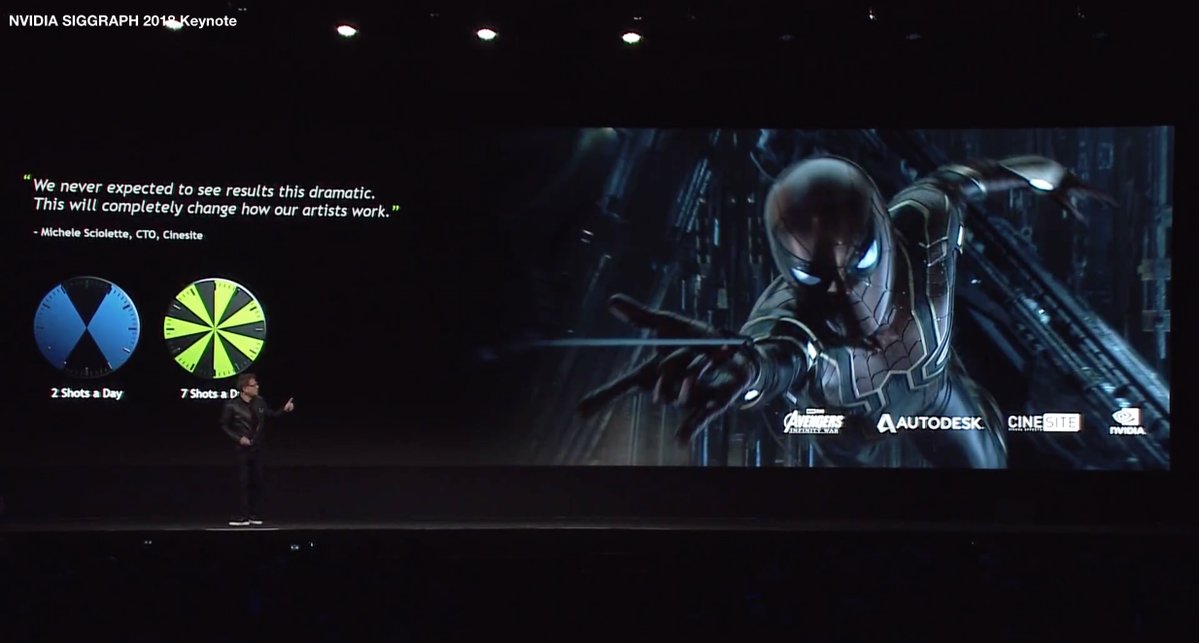 L'industrie du film a depuis quelques temps abandonné le rasterizing (technique actuellement employée pour n'importe quel rendu temps réel 3d jusqu'ici), et le raytracing est devenu une technique standard. Quand on entend raytracing, beaucoup pensent "effets reflections". Mais c'est bien plus que ça : C'est une façon réaliste de calculer l'éclairage. Cette nouvelle Quadro vient donc avec toute une série d'outils et de SDK (notamment Optix) qui permettent aux moteurs précalculés (à l'opposé de temps-réel) tels que Arnold, Renderman, Vray, ... de booster leurs performances en tournant sur GPU. Ces outils sont déjà en place, notamment pour l'architecture (Revit) et le design (Solidworks). Encore mieux, Nvidia propose des outils permettant de faire cohabiter plusieurs logiciels au sein de son moteur de rendu.Outre la puissance de calcul offerte par Turing, Nvidia propose le NV-link, que l'on pourrait considérer comme du SLI 2.0 : Jusqu'ici, chaque carte ajoutée dans un PC pouvait, au mieux, échanger des données mémoire avec ses voisines. Une scène 3d devait être envoyée dans chaque carte pour pouvoir être rendue, mais chacune était responsable de sa propre image (et chaque carte calcule donc une image ou un oeil sur deux). Avec le NV-Link, la mémoire de chaque carte est partagée, évitant cette redondance d'informations, et permettant d'additionner la mémoire disponible sur chacune.