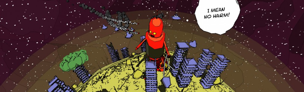 Prenez Jettomero, par exemple. Voilà un jeu qui, d’emblée, inspire une certaine sympathie. Le style graphique est mignon, le gameplay semble assez obtus pour avoir envie d’en savoir plus, la musique est bien cool comme il faut. Jettomero est un petit bonhomme (bon, OK, un grand robot) avec qui on pourrait passer un moment amusant. Et c’est le cas… pendant les 15 premières minutes.Le principe de jeu, malgré son apparente complexité, est simpliste : vous devez sauter de système solaire en système solaire à la recherche de vos souvenirs, et ces souvenirs s’obtiennent en détruisant un boss (avec des QTE, tristesse) qui se trouve sur l’une des planètes. Sans trop détruire les installations des autochtones qui vivent là, cela va sans dire, même si cela n'a aucun impact sur le gameplay. Lorsque vous avez battu le boss, vous empruntez un trou de ver vers le système suivant. Et ainsi de suite jusqu’à la fin du jeu.
