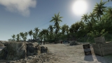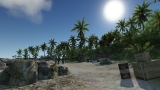 Au niveau bas, on se croirait devant Far Cry, avec encore moins d'ombres dynamiques, mais c'est tout ce que pourront afficher nos amis dans le besoin avec leur pauvre mono-core et leur GeForce 6. Au niveau moyen, le jeu a déjà plus de gueule, les textures ressemblent à quelque chose, mais les couleurs sont drôlement saturées et piquent un peu les yeux. Au niveau élevé, l'éclairage est plus diffus, et les textures ont plus de relief. Enfin, le niveau le plus élevé que personne ne pourra afficher à plus de 30 FPS avant une bonne année, avec ses effets de lumière à se mettre les parties dans un étau, et ses textures qui donnent naissance à des éléments en relief (non mais regardez-moi ces cailloux et ce sable, bordel) grâce à une quelconque technique au nom barbare, en met vraiment plein les yeux. Mais ne rêvez pas, même avec une config de bourgeois il y a peu de chance pour que vous puissiez afficher tout ça.