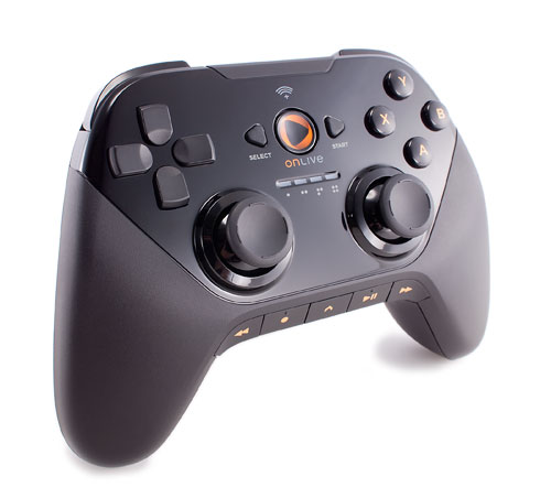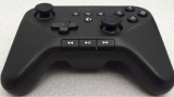 Le pad semble être le fils caché d'une manette Xbox et d'un pad de microconsole OnLive : il emprunte la disposition de l'un, et les boutons play/pause/FF/FW sur la tranche avant de l'autre. Les boutons home, back et menu à la charte android confirment par ailleurs que la console tournera sur un fork de l'OS de google.