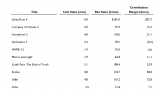 - Dans les chiffres qui fâchent, les prévisions de ventes de 1666, le projet de Patrice Désilets chez THQ Montreal, nous semblent bien optimistes pour une nouvelle licence (4 millions). Surtout pour un jeu dont on sait peu de choses (si ce n'est une supposition sur la date, 1666 correspondant au grand incendie de Londres), et dont les budgets de développement semblent indiquer une sortie lointaine, en 2015 voire 2016. C'est pourtant le jeu sur lequel THQ s'attend à réaliser la plus grosse marge nette (72 millions de dollars) !
