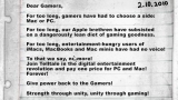 Enfin, là où on commence à se demander s'ils n'ont pas des hordes de développeurs enfermés dans une cave produisant du code 24h sur 24, c'est quand ils promettent que le jeu sélectionné débarquera sur Mac en mars ! A l'heure actuelle, Strong Bad est annoncé comme vainqueur avec 51% contre 44% pour Sam & Max. Macers, il est temps de vous faire entendre, votez pour votre jeu favori et votre nom sera inclus dans les crédits de la version Mac, pour la postérité !