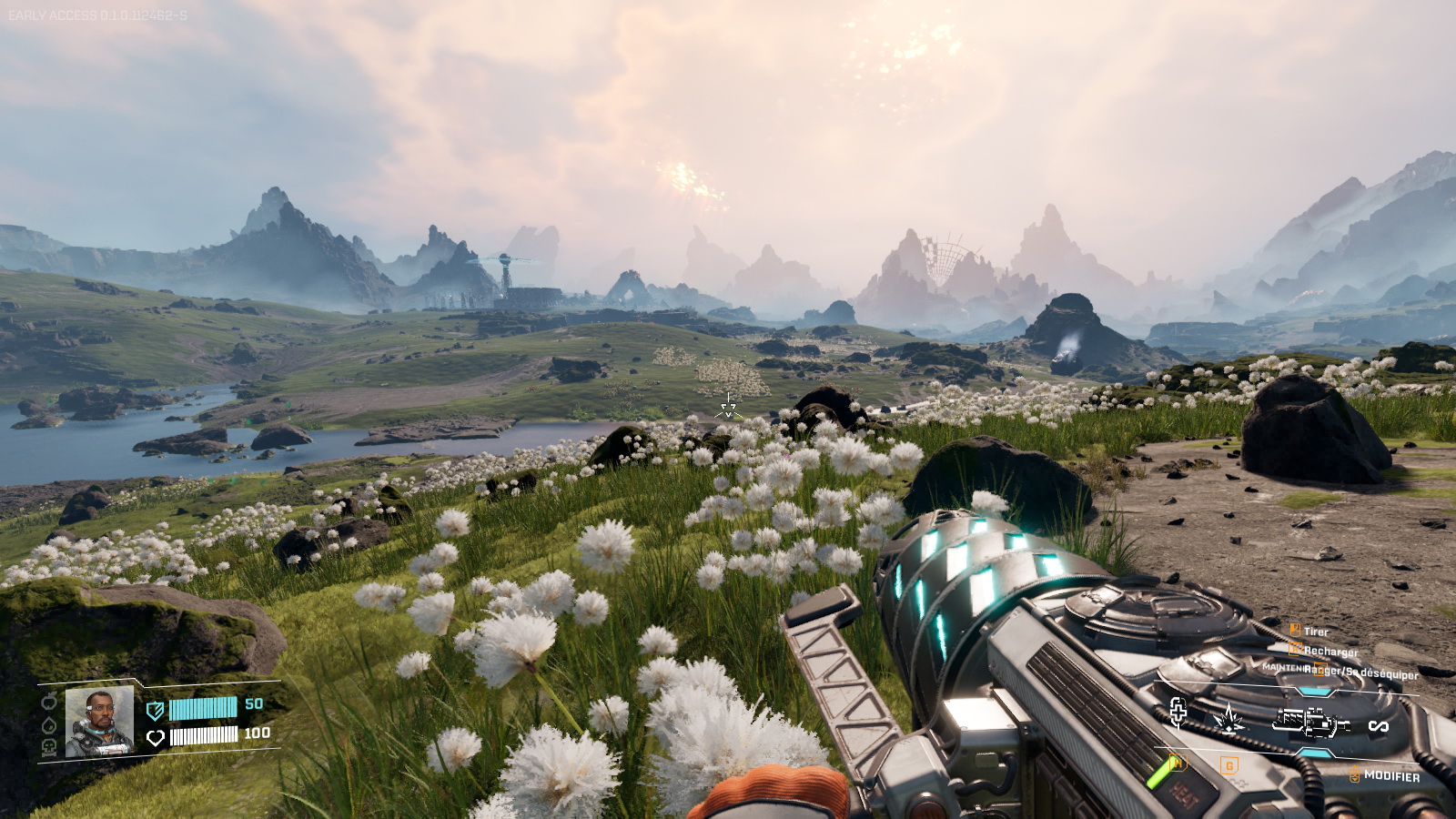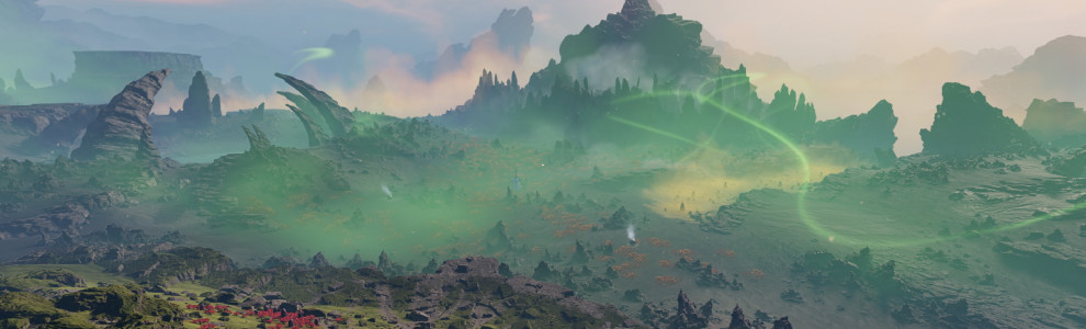 On comprend d'ailleurs plus ou moins vite que ce système apporte tout un tas de possibilités de gameplay. En premier lieu, il vient rythmer la partie comme un cycle jour-nuit puisque après un après-midi radieux, le soleil explose, rôtissant le décor avant qu'il ne refroidisse et qu'une nuit de cendres ne vienne obscurcir le paysage calciné. Le brouillard nocturne dense qui en résulte fait ensuite son apparition puis s'éclaircit avant que le jour ne revienne et avec lui la renaissance de la faune, de la flore et des zones humides. Inutile de dire que tout cela est très beau visuellement et l'Unreal Engine fait bien le boulot de ce côté-là. À chaque explosion, les ennemis sont aussi rayés de la carte, ce qui peut être pratique si vous voulez aller reprendre vos affaires sur votre cadavre ou visiter les bases avant que les aliens ne viennent reprendre possession des lieux. Enfin, cet état calciné permet de découvrir certains endroits et plantes inaccessibles en présence de la végétation.