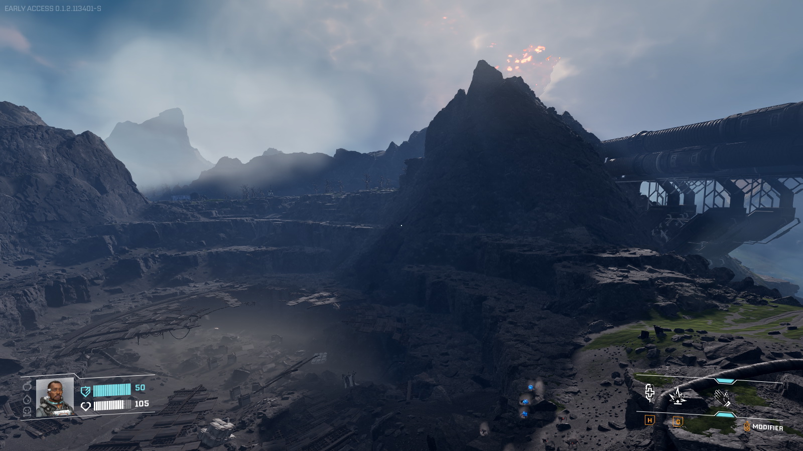 Bref, au final, on se retrouve avec un jeu mêlant habilement fabrication, survie et exploration et il m'aura fallu un peu plus de 50 heures pour arriver au bout de la partie histoire de cet accès anticipé. Je ne peux malheureusement pas trop parler du scénario du jeu car bizarrement, l'écoute de logs audio (qui sont en plus coupés par toute autre communication) ou la lecture des journaux trouvés sur des tablettes (et parlant souvent de tout et de rien) n'est pas vraiment facilitée par la présence d'araignées tentant de vous tuer ou la menace de finir en saucisse grillée s'y on s'attarde un peu trop. On peut d'ailleurs regretter que ces logs ne soient pas consignés quelque part dans un menu pour les apprécier plus tard. Enfin, l'accès anticipé se finit étrangement en intérieur dans un complexe me rappelant les heures sombres (mais légitimes) de Doom 3, les stencil shadows en moins. On va dire que pour clôturer l'accès anticipé, ça va.