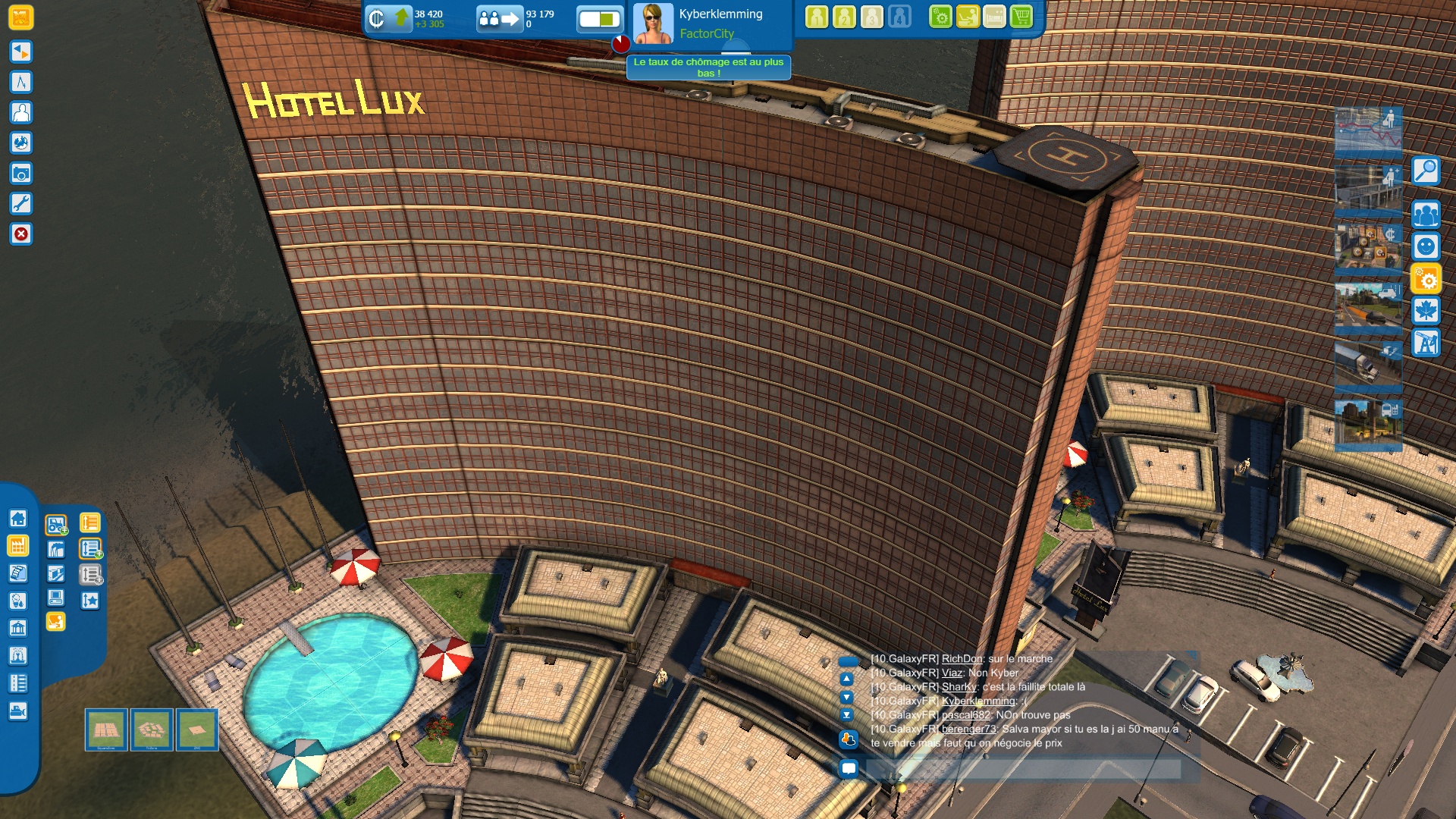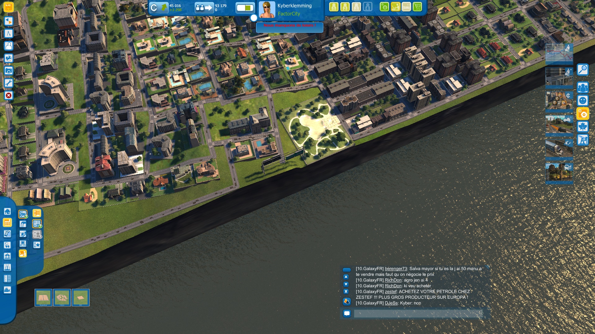 En additionnant MMO et city builder, on avait imaginé tout un tas de délires comme des alliances et de regroupements les villes en agglomérations/régions/pays avec possibilité d'élire un chef ou la création de corporations pour contrôler les prix d'une ressource précise. Mais non. Le côté MMO se limite à l'échange de ressources entre villes et à une fenêtre de chat peu pratique où on vend les ressources à la criée, le tout avec souvent du lag. Le système d'échange de ressources est sympathique mais on peut s'en passer en choisissant une carte appropriée et les joueurs font un peu n'importe quoi. Et ce n'est pas tout. Même l'emplacement sur la planète n'a que peu d'importance. La distance entre deux villes n'a aucune influence sur l'échange de ressources et ce n'est pas parce que vous êtes au bord de l'eau que vous pourrez créer un port. Du coup on se demande bien pourquoi il y a un abonnement d'autant plus qu'en se promenant avec son avatar on remarque des jolies pub in-game. De plus, a période d'essai de sept jours est trop courte pour permettre aux newbies du city building de vraiment s'investir et d'avoir envie d'aller plus loin. Enfin, le jeu manque de game masters pour dynamiser la communauté.